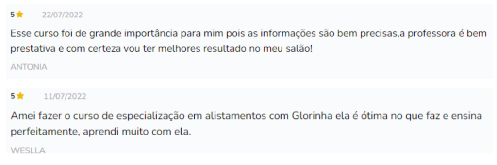 Não tem dúvida, o Curso Alisamento 2.0 simplesmente funciona. A prova disso são as milhares de alunas com resultados incríveis e que tiveram suas vidas transformadas.
